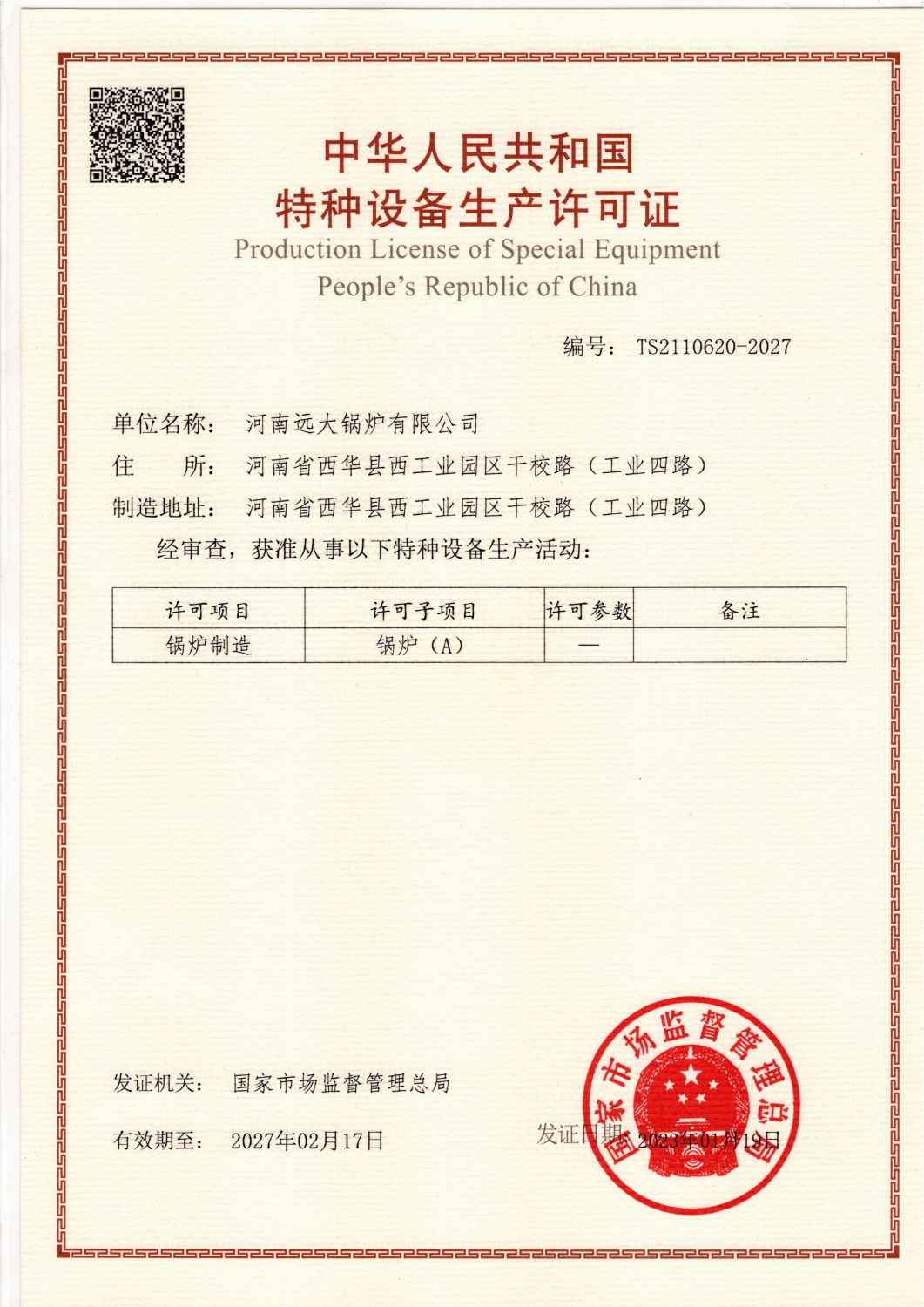 鍋爐制造資質、