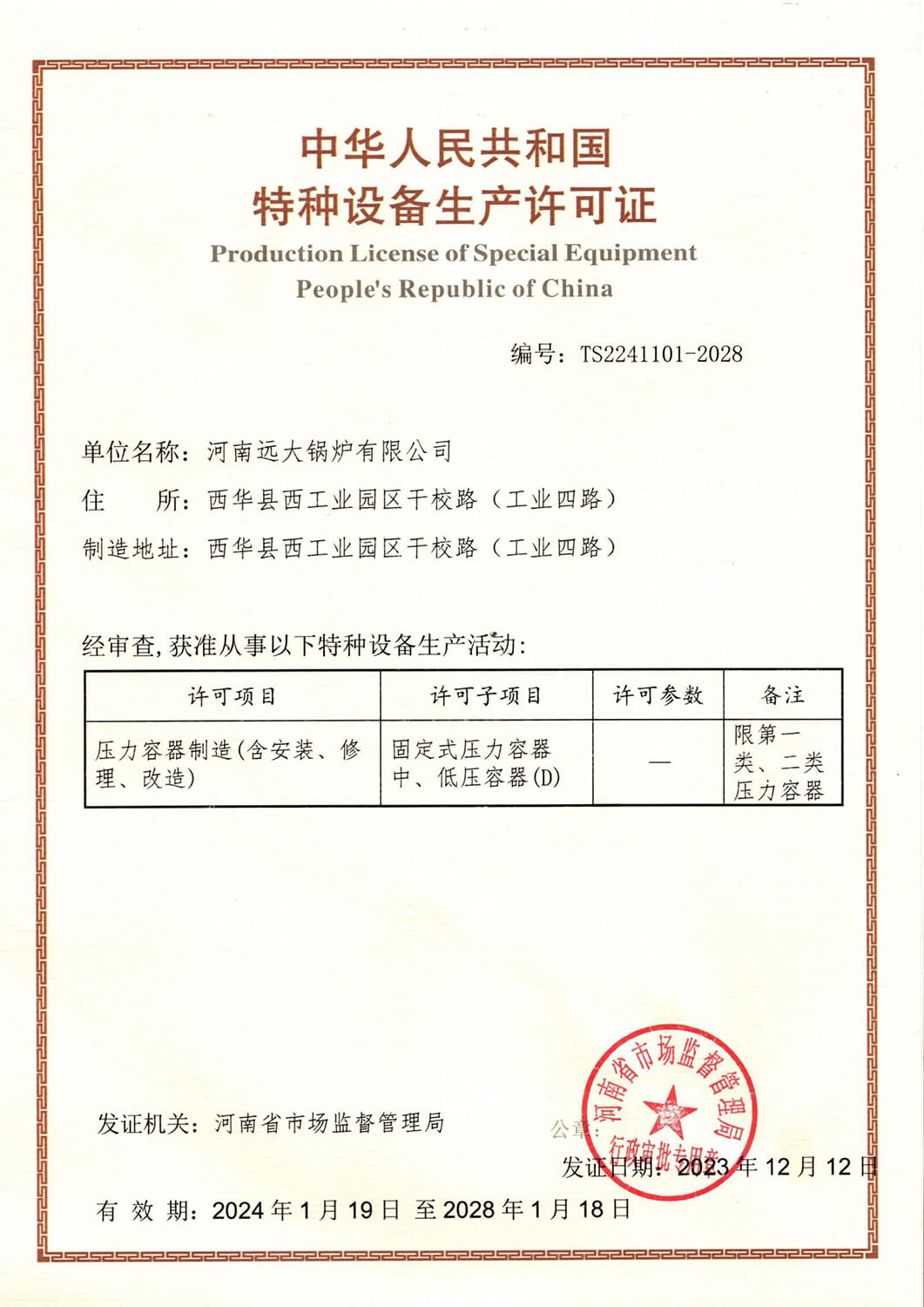 壓力容器設計及制造資質,并通過