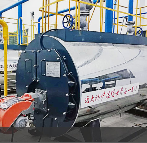 遠大臥式燃氣熱水鍋爐,采用內(nèi)燃三回程火管結(jié)構(gòu),下置波紋爐膽,高溫?zé)煔饨?jīng)波紋爐膽回火室依次沖刷第二及第三回程煙管,由后室煙囪排入大氣。該型鍋爐配備全自動燃燒機,具有給水自動調(diào)節(jié)、控制水溫等功能,還具有程序啟停、超壓熄火等全方位保護功能,運行穩(wěn)定、安全可靠。